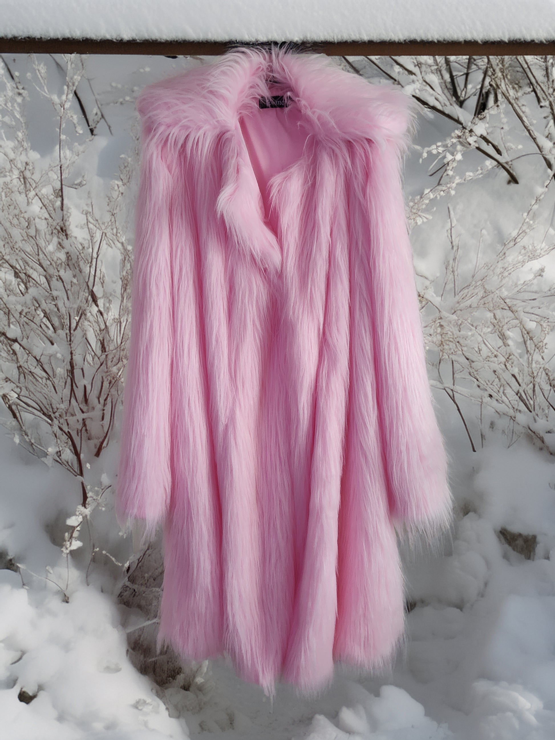Disfruta de un glamuroso invierno con este abrigo de piel sintetica rosa, siente su suavidad y calidez.
